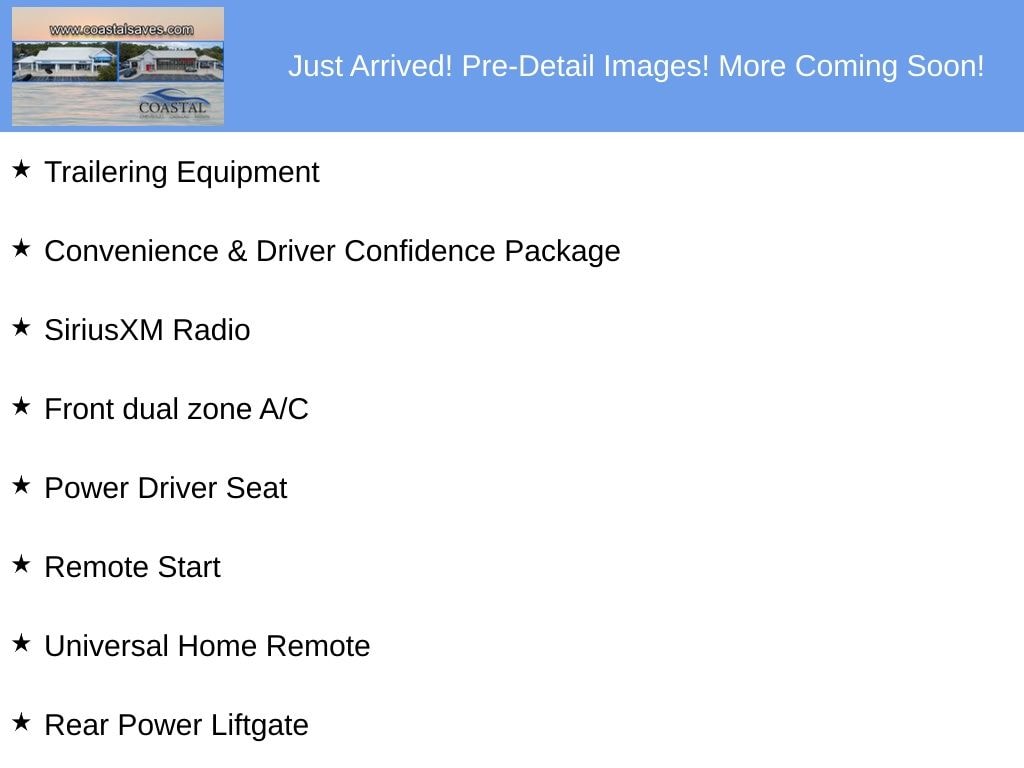 3rd row seats, 4.2" Multi-Color Enhanced Driver Instrument Display, Apple CarPlay/Android Auto, Auto headlights, BackUp Camera, Convenience & Driver Confidence Package, Front dual zone A/C, Heated Driver & Front Passenger Seats, Heavy-Duty Cooling System, Power Driver Seat, Rear Power Liftgate, Remote Start, SiriusXM Radio, Trailering Assist Guidelines, Trailering Equipment, Universal Home Remote, Wheels: 18" Bright Silver-Painted Aluminum.